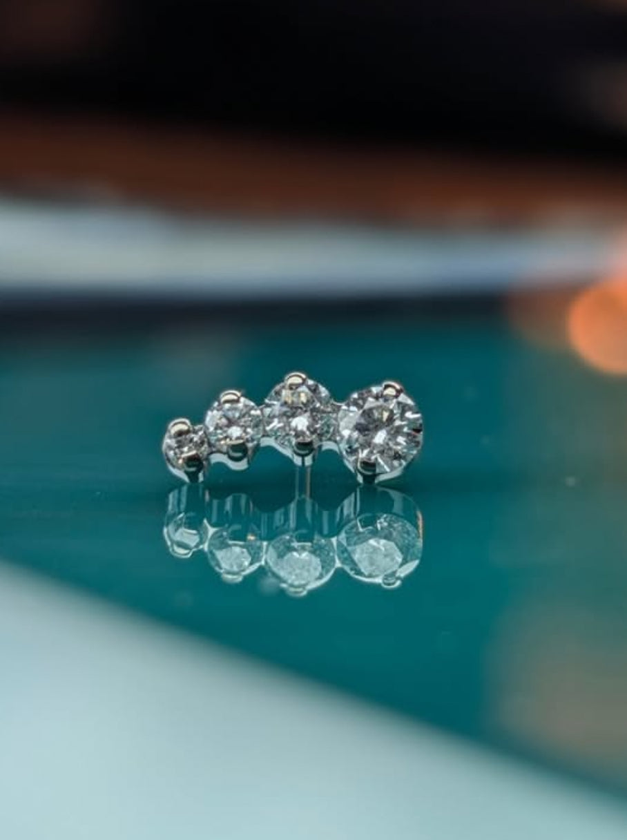 Threadless attachment featuring four lab diamonds set in implant grade titanium.